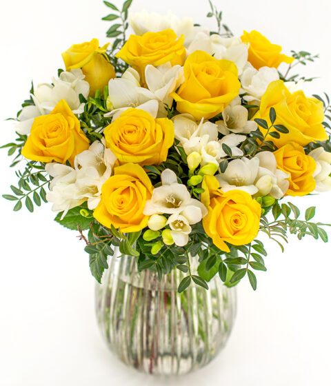 Don’t be fooled by the low price, enjoy the beauty of our Sunlight bouquet. One of our most popular bouquets made up of sunny yellow roses, crisp white freesia, and seasonal foliage. Sent in a protective Eflorist box, the bouquet arrives safely and offers a delightful unboxing experience. Your super-fresh flowers will arrive in bud, ready to transform in front of your lucky recipient within 48 hours from delivery, all with tracked delivery and nationwide coverage giving you peace of mind.